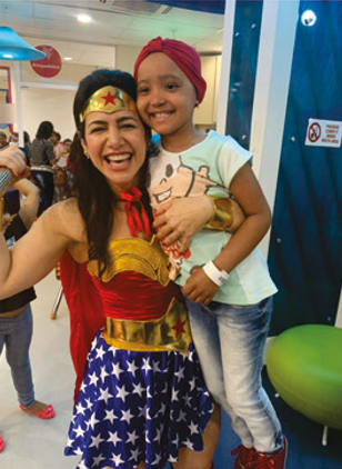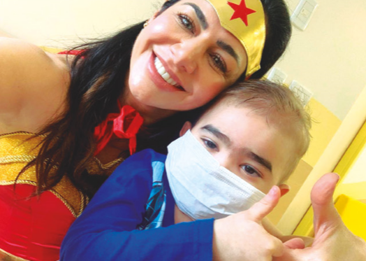 Enquanto visitava as alas, a Dra Rita, vestida de "Mulher Maravilha", conversou com diversas crianças que fazem tratamento no local.
