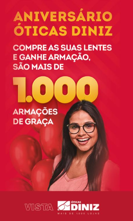 Óticas Diniz de Sertãozinho comemora 10 anos e convida você cliente amigo para um mês repleto de descontos especiais!
