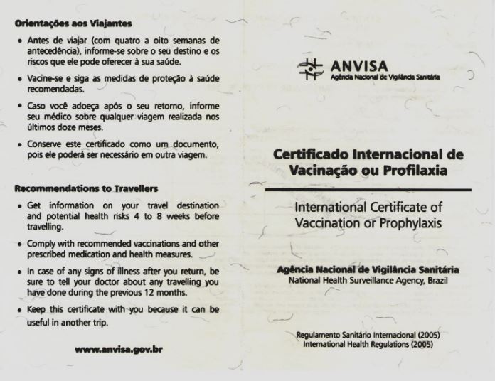 - Comprovante de viagem (bilhete de avião, por exemplo) ao país com exigência do CIVP.